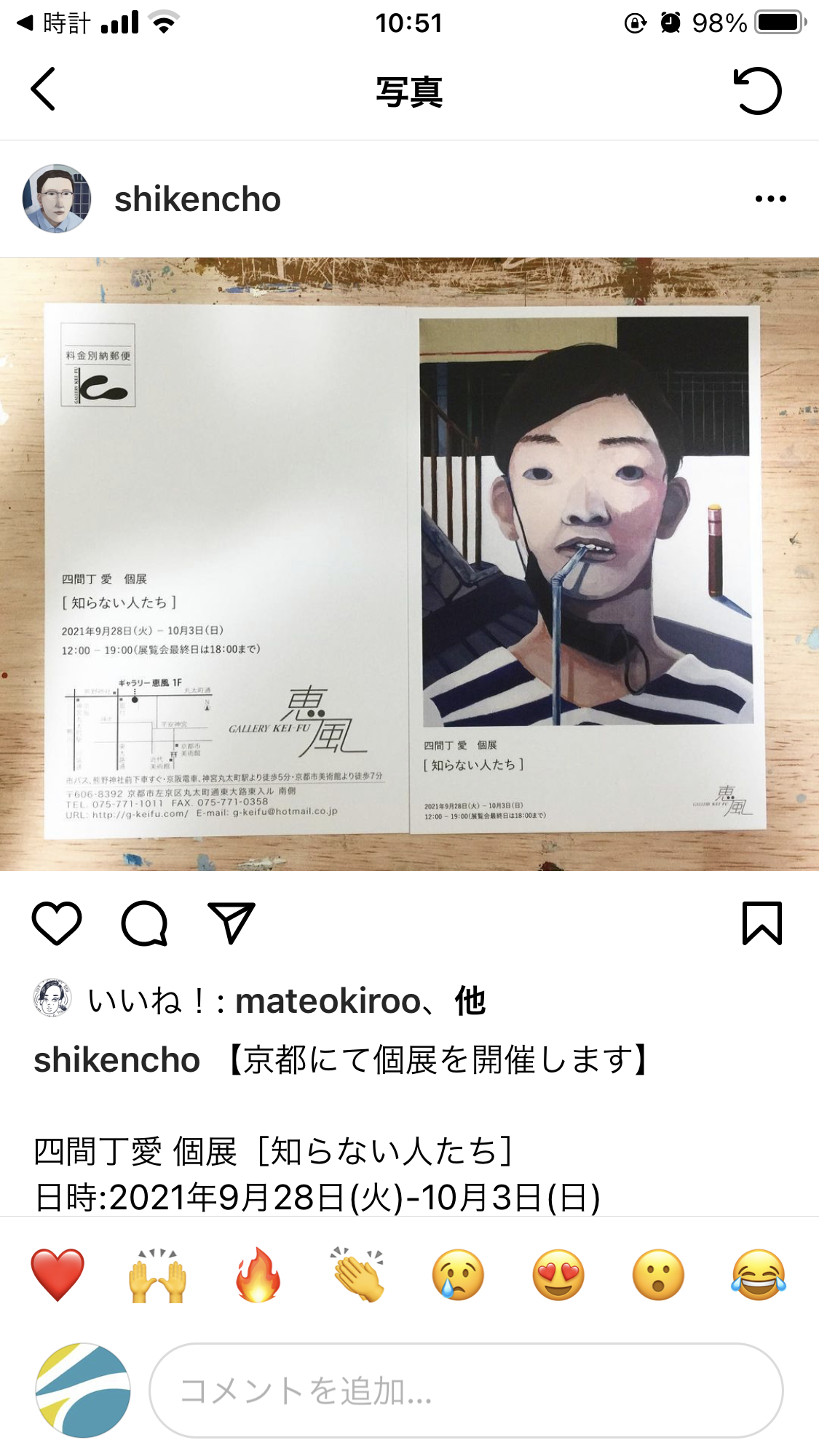 メンバー作家の個展案内 2021.09.20 news メンバー作家の四間丁愛 開催日 2021.9.28(火)-10.3(日) 12:00-19:00 場 所 ギャラリィー恵風 京都市左京区丸太町通東大路東入ル南側 T E L 075-771-1011